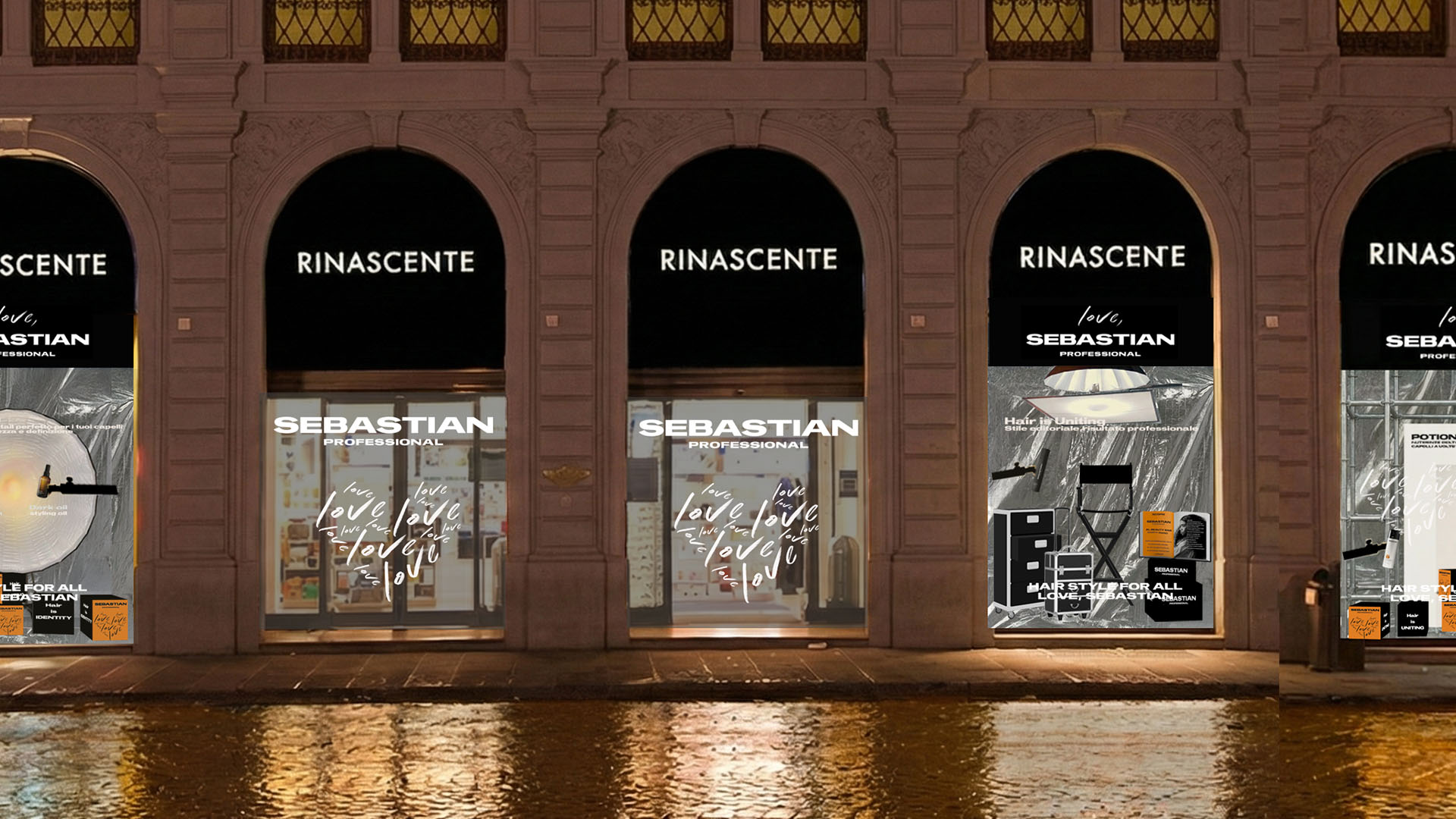 Tra vetrine e spazi interni, prende vita un messaggio d’amore che celebra lo stile come linguaggio universale, celebrando il manifesto del brand HAIR STYLE FOR ALL: LOVE, SEBASTIAN.